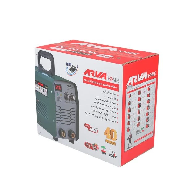 دستگاه جوش 200 آمپر آروا مدل 2178 ساخت ایران بوده و دارای ولتاژ ورودی 220 ولت (برق شهری) و حداکثر شدت آمپراژ خروجی 200 آمپر میباشد. این دستگاه جوش آروا قابلیت جوشکاری از نوع الکترود MMA با الکترود 2.5 و 3.22 را دارد.