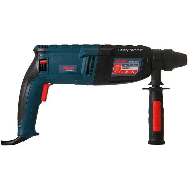 شخصات داخلی بتن کن 3 کیلویی 5271 یکی از عوامل مهمی که در خرید بتن کن باید به آن دقت کنید مشخصات و ویژگی های موتور دستگاه است. بتن کن آروا 5271 یک دستگاه 3 کیلویی با توان 850 وات است و قدرت ضربه 3.5 ژول و سرعت ضربه 5100 ضربه بر دقیقه دارد. این دستگاه از سیستم قلم گیر 4 شیار یا همان SDS PLUS استفاده می کند و برای کارهای تخریب و سوراخکاری مورد استفاده قرار می گیرد. علاوه بر تمام موارد آرمیچر دریل بتن کن آروا مدل 5271 نخ بندی شده است و سیم پیچی آن 100% مس می باشد. وجود این ویژگی موجب حفظ فرم موتور در دور بالا و تحمل حرارتی 220 درجه می شود که طول عمر و کارایی دستگاه را افزایش می دهد. ویژگی هایی که موجب افزایش کارایی بتن کن 5271 می شود بعد از توجه به ویژگی های داخلی بتن کن 3 کیلویی 5271، نوبت به بیان ویژگی هایی می رسد که موجب راحتی شما به هنگام کار می شود و کارایی دستگاه را بالا می برد این ویژگی ها شامل موارد زیر است. کلید تغییر حالت: توسط این کلید می توان دستگاه را در سه حالت چرخش ضربه، فقط ضربه و فقط چرخش تنظیم کرد. دسته جانبی با قابلیت چرخش 360 درجه: وزن بتن کن ها نسبت به یک سری از ابزار آلات صنعتی دیگر بیشتر است و وجود دسته جانبی با قابلیت چرخش 360 درجه موجب راحتی به هنگام استفاده از دستگاه می شود و دقت در کار را نیز بالا می برد چون تسلط بهتری روی دستگاه دارید. طراحی ارگونومیک و ضد لرزش: داشتن طراحی بدنه ارگونومیک و دسته ضد لرزش موجب افزایش راحتی شما به هنگام کار می شود و در نتیجه کار با دقت و کیفیت بالاتری انجام خواهد شد. ویژگی های مربوط به ایمنی دریل بتن کن آروا مدل 5271 با هر وسیله ای که کار می کنیم مخصوصا ابزار های صنعتی، ایمنی بسیار اهمیت دارد. به همین خاطر برخی تکنولوژی ها و ویژگی ها در دستگاه بتن کن مدل 5271 موجب افزایش ایمنی می شود که در ادامه معرفی می کنیم. سیستم کلاچ ایمنی: ممکن است در حین عملیات سوراخکاری یا تخریب، مته در قطعه کار گیر کند؛ در این زمان سیستم کلاچ ایمنی فعال می شود و نیروی که موجب چرخش مته می شود دیگر به کاربر انتقال داده نمی شود و دستگاه به صورت خودکار قطع می شود. این مزیت موجب افزایش ایمنی در هنگام کار با دستگاه می شود.