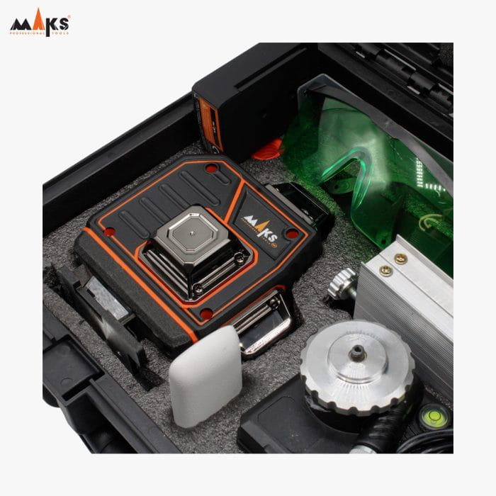 تراز لیزری 4 بعدی مکث مدل TL16 به عنوان یک محصول بسیار حرفهای دارای مجموعه متنوعی از لوازم جانبی شامل ریموت کنترل، 2 عدد باتری شارژی، شارژر، عینک محافظ، پایه آهنربایی، سهپایه کوچک، تبدیل سهپایه و جعبه حمل اختصاصی از نوع BMC است که با ارائه گارانتی 12 ماهه شرکت مکث محصولی کامل و تمامعیار را در اختیار متخصصان حرفهای قرار میدهد.