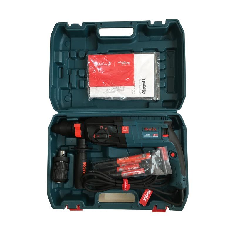 دریل بتنکن 28 میلیمتری 850 وات رونیکس مدل 2713، مزایای بیشمار دیگری از جمله سیستم پیشرفته کلاچ، قابلیت نصب ابزارگیر 4 شیار و سه نظام 13 میلیمتری و … را به کاربران ارائه میدهد.