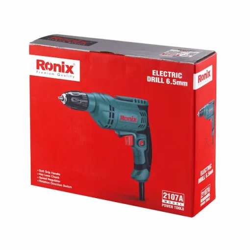 دریل 6/5 اتوماتیک 400 وات رونیکس مدل 2107A دارای موتور قدرتمند 400 وات با سرعت گردش 4300 دور در دقیقه است. برای سوراخکاری و بستن پیچ در سطوح چوبی و فلزی کاربرد فراوان دارد.