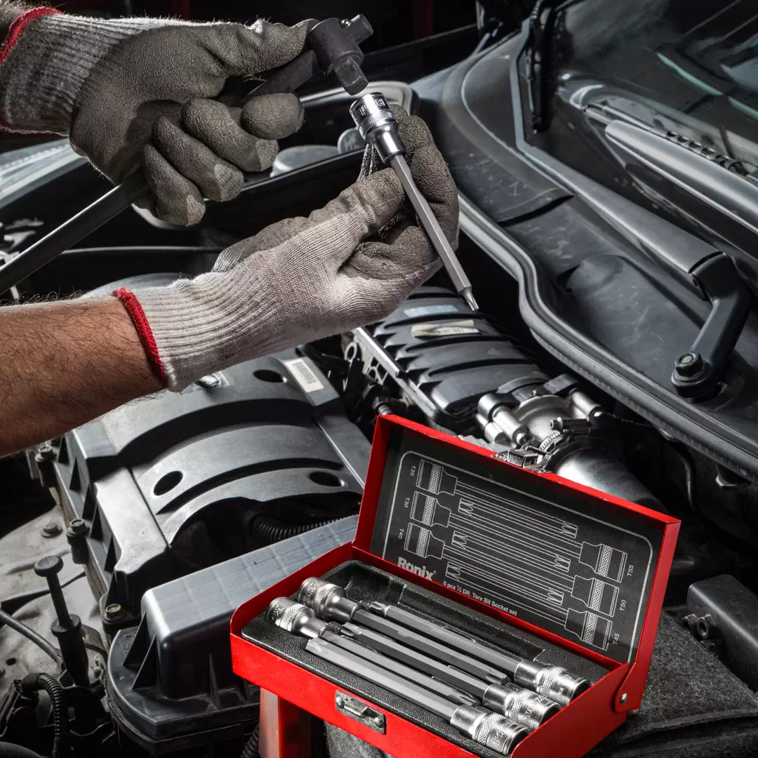 جعبه بکس 1/2 اینچ ستاره ای بلند 6 پارچه رونیکس مدل RH 2691 مجموعه ای از آچارهای آلن با کیفیت بالا است که برای استفاده با ابزارهای دستی و بادی طراحی شده است. این مجموعه شامل موارد زیر است: