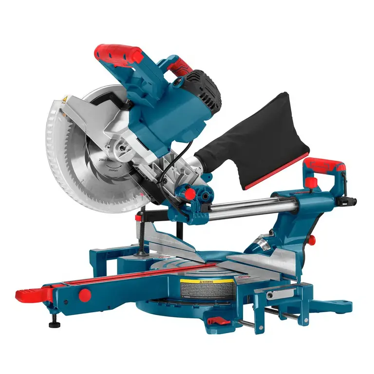 _ تیغ اره TCG و مناسب برش MDF؛ صفحه برش با سایز 30×250 میلیمتر (80 دندانه)؛ ظرفیت برش 305×85 میلیمتر؛ تنظیم زاویهی برش در محور کفی°52 چپ و °60 راست؛ تنظیم زاویهی برش محور بازویی °48±