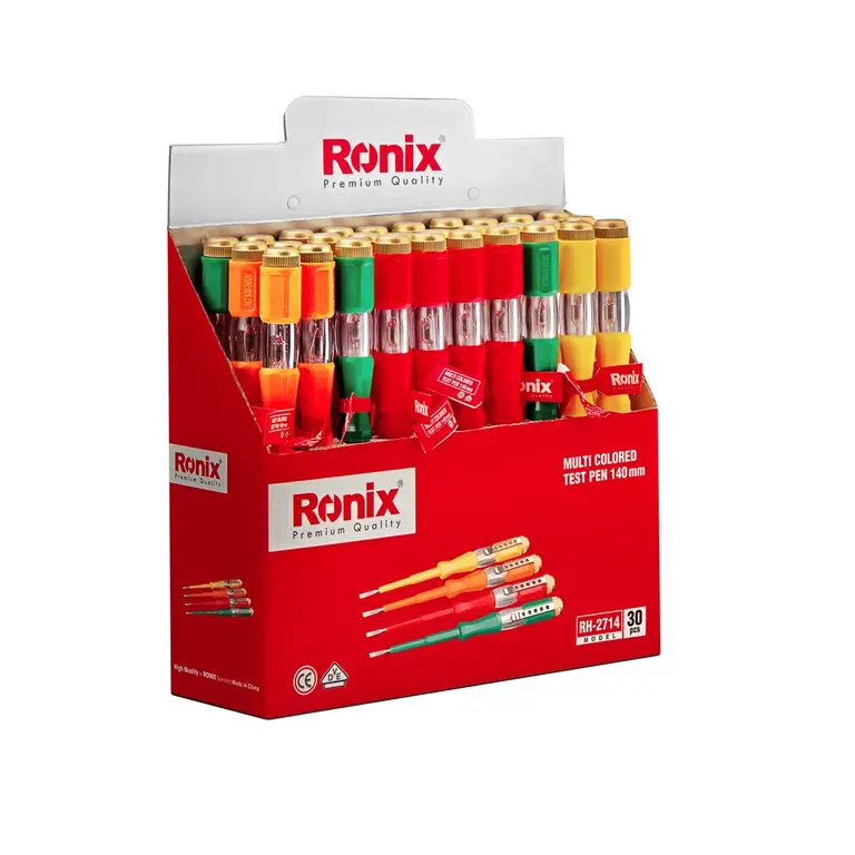 فازمتر کوچک مدل RH-2714 از برند رونیکس یک ابزار بسیار کاربردی در زمینه کارهای برقی است. این فازمتر با طراحی کوچک و دستهی پلاستیکی، برای انجام کارهای برقی در خانه یا کارگاه بسیار مناسب است. با اتصال نوک فازمتر به سیم بدون روکش یا درج این ابزار در سوراخ پریز برق، میتوانید جریان فاز را از نقطه نول تشخیص دهید.