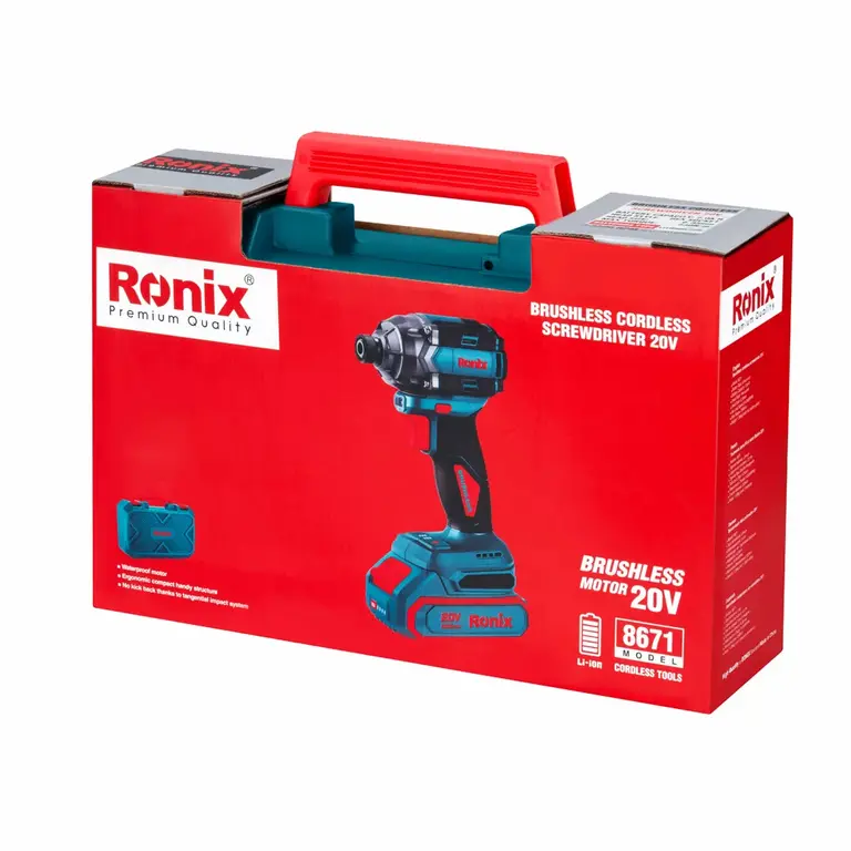 - این پیچگوشتی شارژی رونیکس مجهز به درایو ششگوش 6,35 میلیمتری است.
