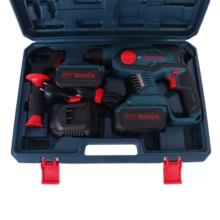 بتن کن شارژی بدون ذغال رونیکس مدل 8910K مجهز به سیستم ابزارگیر SDS-PLUS است که میتواند مته هایی با سطح مقطع چهار شیار را ثابت نگه دارد و موجب افزایش تاثیر عملکرد این محصول شود.